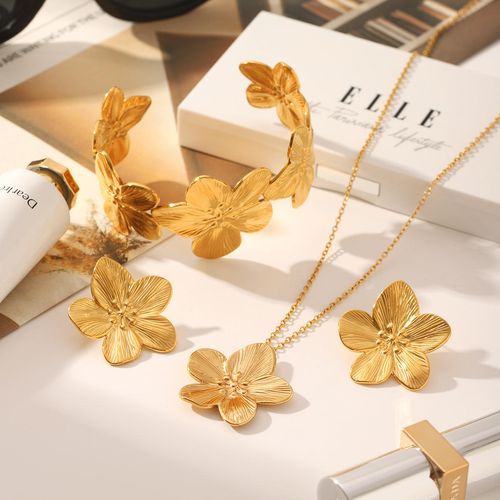 Flower Necklaces and Earrings set for Women Gold Statement Earrings White Pink Flower Jewelry Set Summer Charm Beach Vacation 2025 Dainty Trendy Accessories